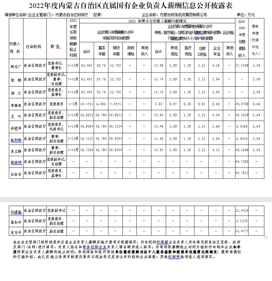 2022年度內(nèi)蒙古自治區(qū)直屬國有企業(yè)負(fù)責(zé)人薪酬信息公開披露表